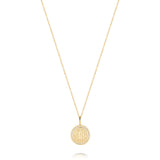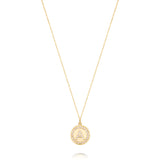 The SIMONA ENGRAVED MEDALLION features pave diamonds measuring a total of .16ct around the border of this 1/2" charm. Hangs from an adjustable 16"-18" cable chain.