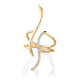 The WAVERLY DIAMOND MIRROR RING is a statement ring measures approximately 1.25" in height and features 18 handset diamonds.