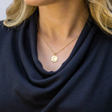 This EVA initial necklace features a 1/2" initial charm hung on an adjustable 16"-18" cable chain.