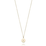DETAILS: Charm measures approximately 5/8" and hangs on a dainty 5mm loop. Features a 2.4mm diamond measuring .05ct. set in the center of the charm. Hung on our Classic Cable Chain measuring 1mm thick, featuring a lobster clasp and an adjustable 16"-18" length.