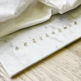 Our KYLA ZODIAC STUD SINGLES feature dainty 7mm cutout zodiac symbols.