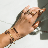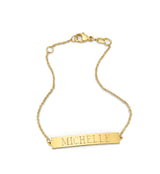 DETAILS: Bar measures 1.25" long and 6mm height. Bracelet measures 7" with a 6.5" adjuster. Choice of lowercase block, uppercase block or script font. Symbols such as ♥, +, &, =, ▪ can be engraved, as can dates, numbers, roman numerals and coordinates. Also available in necklace version.