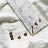 DETAILS: The EVA charm measures approximately 1/2" and features a cutout initial of your choice. Hung on a dainty 5mm round jump ring meant to slide onto thin necklace chains. Compatible with all Sarah Chloe chains. Charm is sold loose, to add a chain, please shop our CHAINS collection.