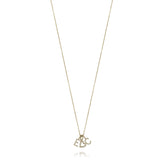 The 14kt Yellow Gold BLAKE necklace features two 3/8" AMELIA diamond initial charms with a center diamond LOVE COUNT heart charm.