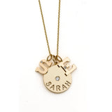 The MELANGE- EVA & SHEA combo necklace features our EVA NAME medallion layered with two SHEA initial charms hung on our Classic Cable Chain
