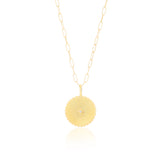 Part of the Monica Rose x Sarah Chloe Style Edit, the ALAIA DIAMOND MEDALLION measures 5/8" and features dainty beading around the perimeter. A .01ct starburst diamond is set in the center.