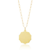 Our PARKER Scalloped Medallion features a dainty scalloped design.