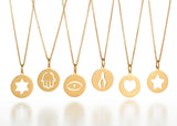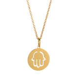 Part of the EVA collection, this cutout HAMSA charm measures 1/2" and is hung on a 16"-18" cable chain.