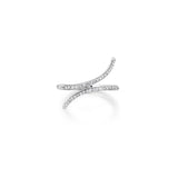 The SAMIRA diamond ring band gently curves in opposite direction. Ring is lightweight, and features handset diamonds across the front of the ring.
