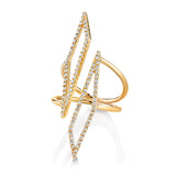 Ring features a mirrored reflection layout of our v.01 geometric shard design with handset diamond throughout the face of the ring.