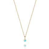 Part of the Sarah Chloe Fine Jewelry Sister Label SLDAcollection, this signature Turquoise Pendant features a 3mm (.10ct) turquoise in a bezel setting. Hung on a dainty 16" cable chain, it adds a great color accent to any Neck Stack