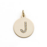 The SIENNA DIAMOND INITIAL CHARM features a pave set diamond initial in the center. Available in 4 sizes. Model is shown wearing the Large 3/4" version.