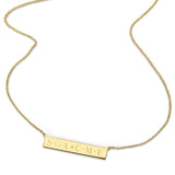 DETAILS: Bar measures 1.25" long and 6mm high. Hangs on a 16"-18" chain. Up to 15 characters can be featured on the Leigh necklace. Choose to separate initials with any of the following symbols: ♥, +, &, =, ▪. (If your keyboard does not support any of these symbols, we recommend copy/pasting them from here.)
