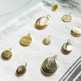 The large MADI medallion measures approximately 5/8" and features an engraved monogram with a beaded design around the perimeter.