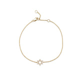 Our dainty Star of David bracelet features a 3/8" star in plain and diamond version. Chain measures an adjustable 6"-6.5"-7" length.