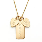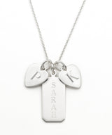 This combination necklace features a 3/4" dogtag charm with 2 1/2" initial MAYA hearts. A perfect necklace for mothers! To add additional charms, please shop the Design Your Own section.