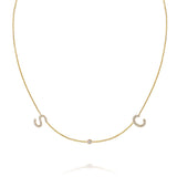 The SHAYNA DIAMOND DUO NECKLACE features two diamond initials with a bezel set center diamond.