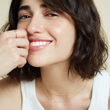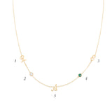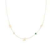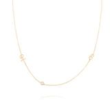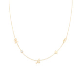 DETAILS: Necklace features dainty initials and accent charms set asymmetrically off-center on a dainty gold chain. Option to select mini (5mm) or large (8mm) initials in diamond, script or block font and add hearts, bezel set birthstones and other accent charms!