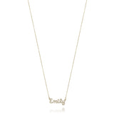 The RIAVA DIAMOND SCRIPT Name Necklace features the name or text of your choice in a dainty script font with handset diamonds.