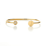 DETAILS: Adjustable bangle features a 3/8" round disc engraved with your choice of monogram or letter. The opposite side features a diamond disc with 7 handset diamonds totaling .14cts.
