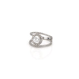 The QUINN v.02 diamond engagement ring features a 1ct. round cut diamond in the center, with a double row of diamonds surrounding and enhancing the center stone.