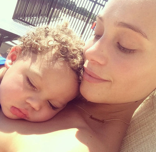 Shay Mitchell layers her CAMILLA necklace with her KARI ROPE MEDALLION.
