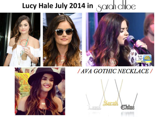 LUCY HALE in Gothic Name Necklace