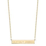 STYLE TIP: Please note that we only recommend this style when the two names featured have approximately the same number of characters. If there is a difference of more than two character count, we recommend selecting the LEIGH ID DIAMOND ACCENT NECKLACE where the diamond is featured on the right hand side, allowing the names to be evenly spaced.